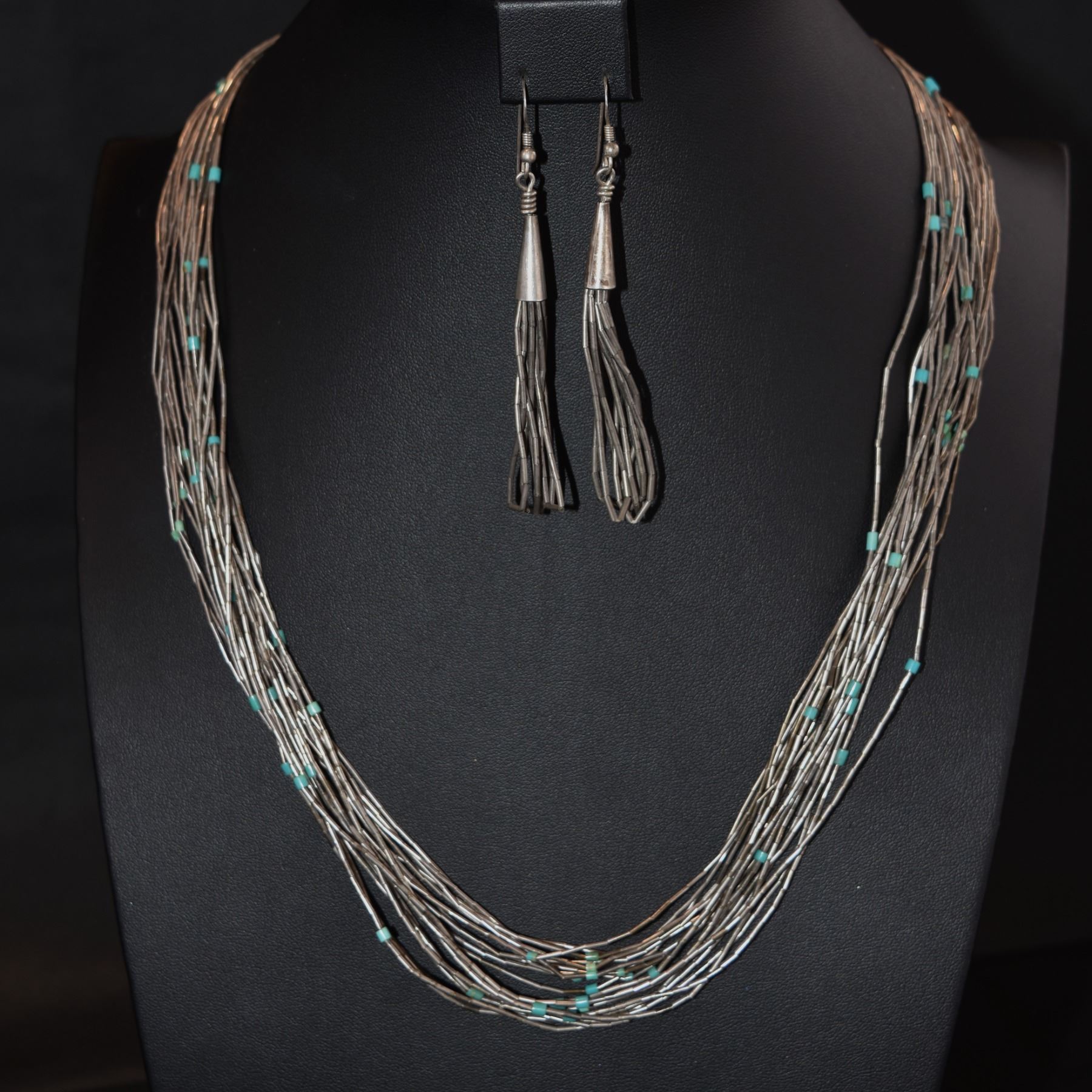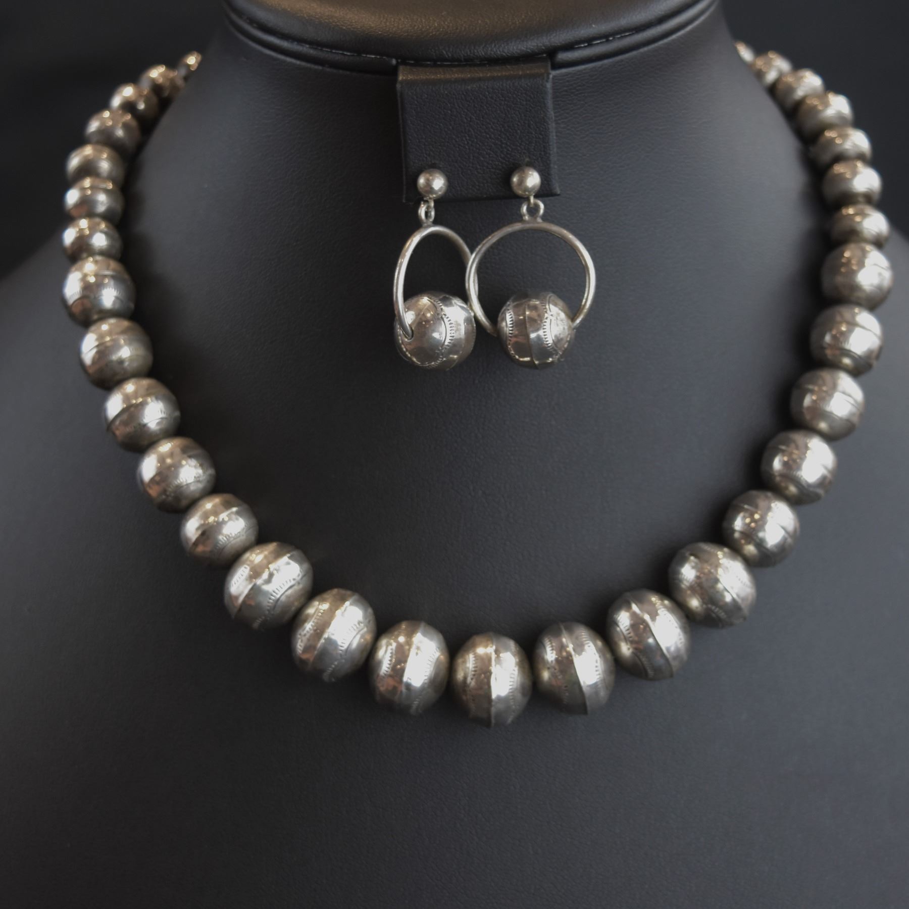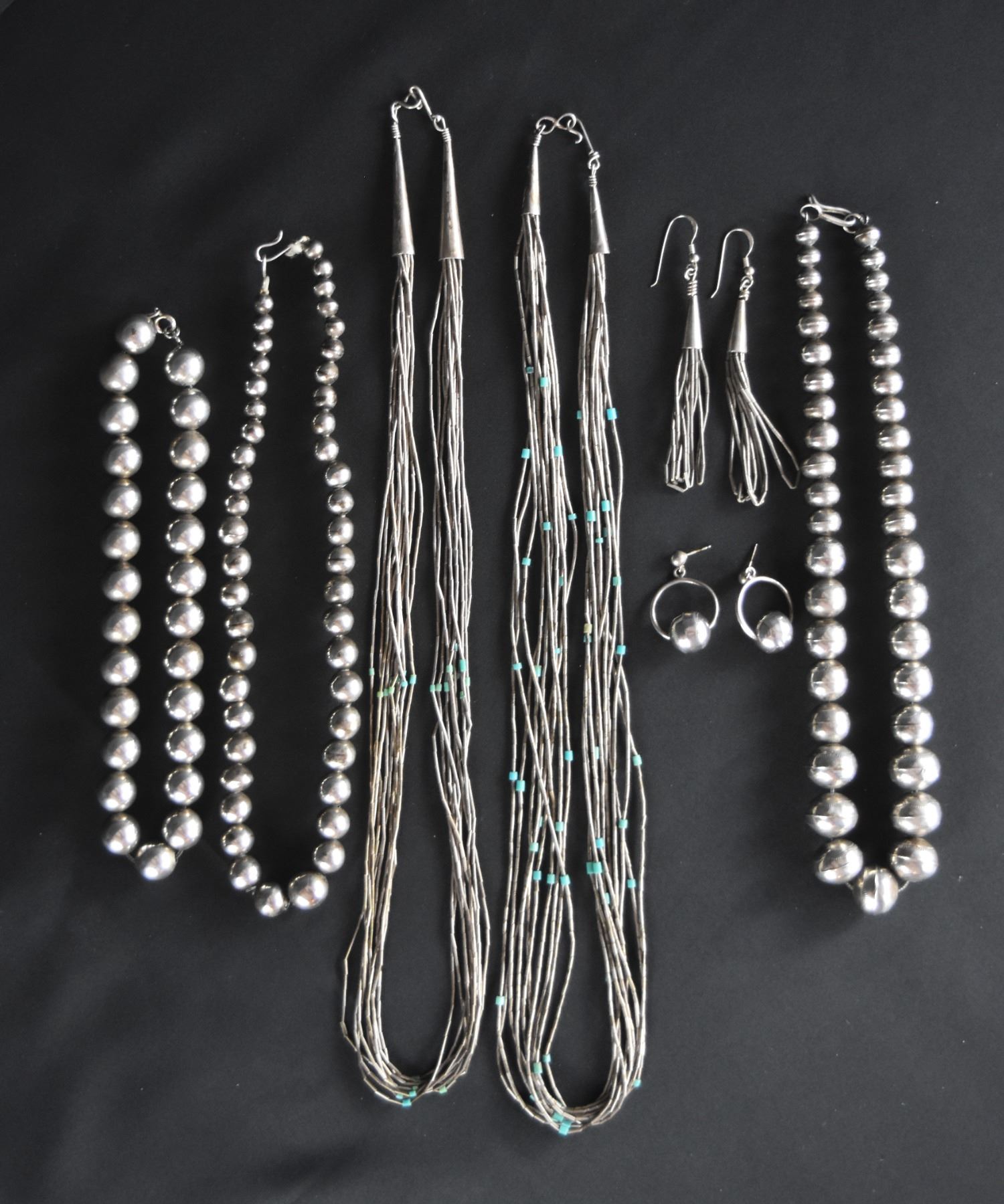 Lot of 5 Necklaces & 2 pair of Earrings: 1)Silver Handstamped Graduated with Earrings, 2) Lot of 2 S