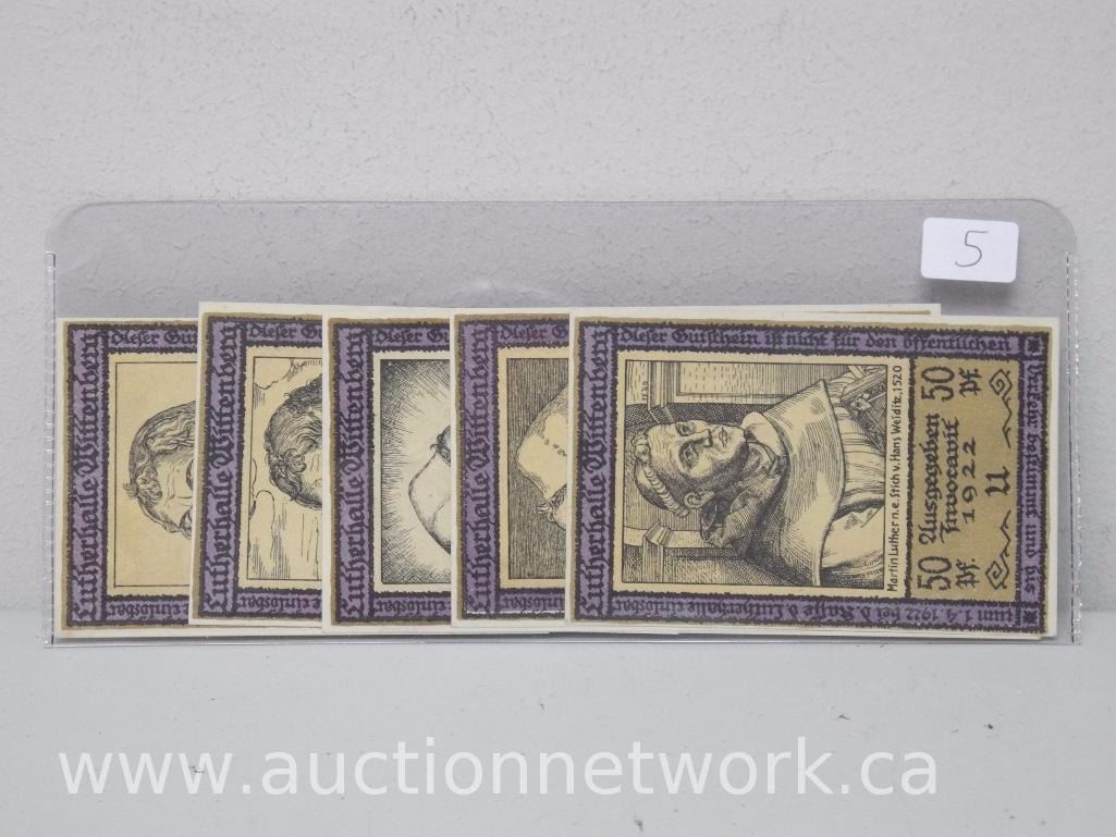 Lot of (5) Notgeld Paper Money (Lutherhaus)