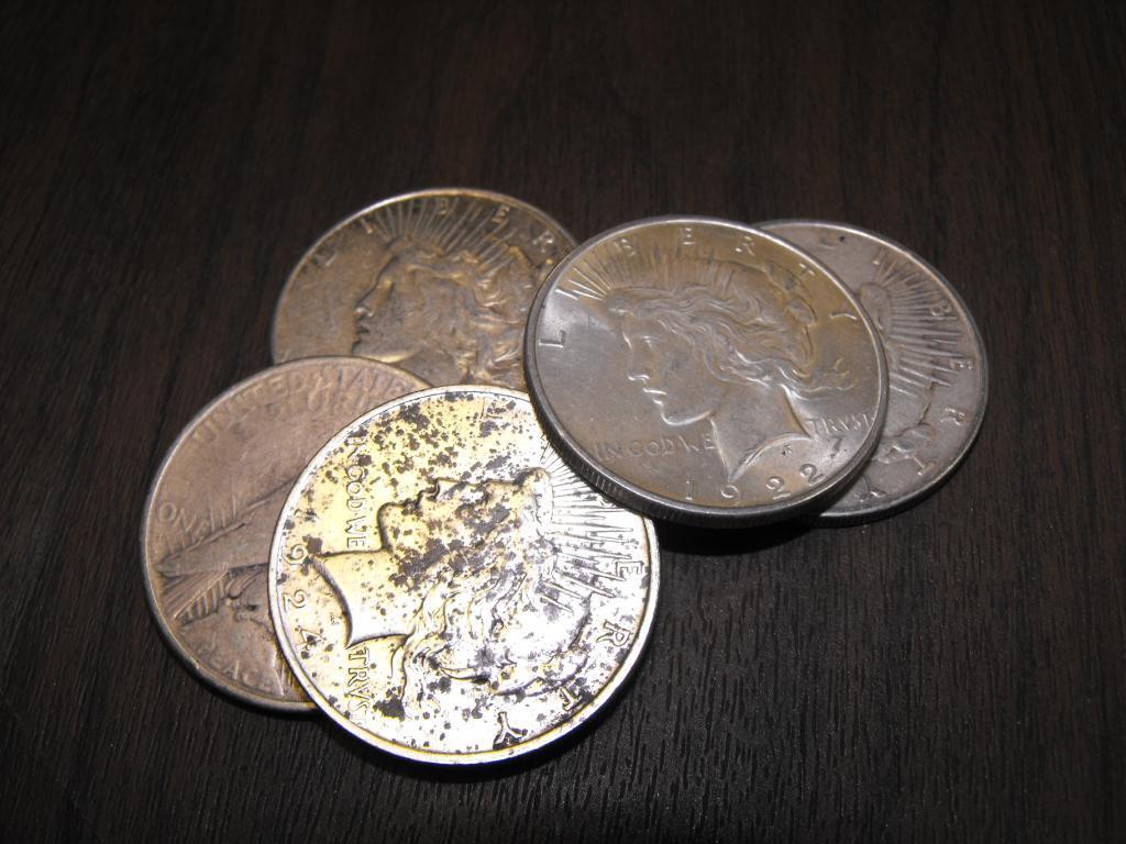 A lot of 5 random date Peace silver dollars- From larger cache of Asset Seizures acquisitions