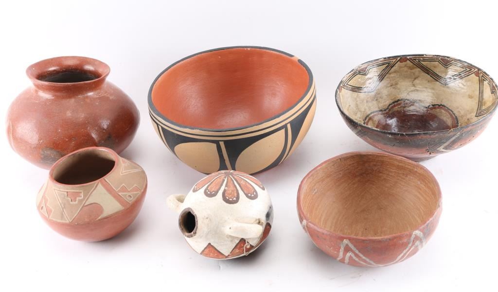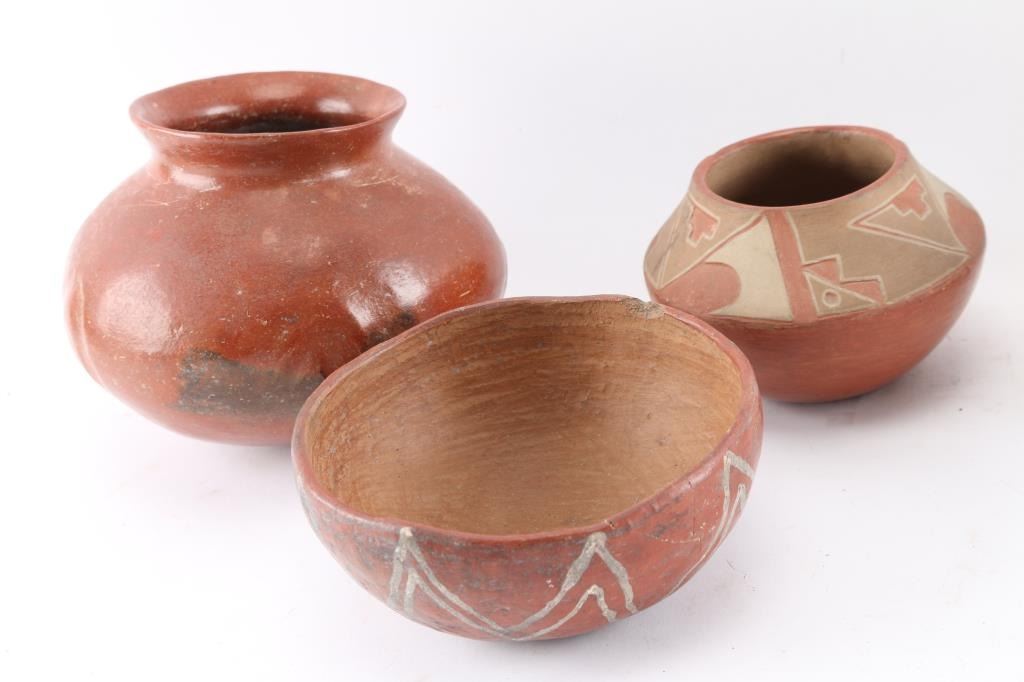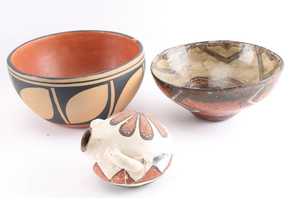 (1) Second largest painted pot unsigned appears to have been repaired, 8";