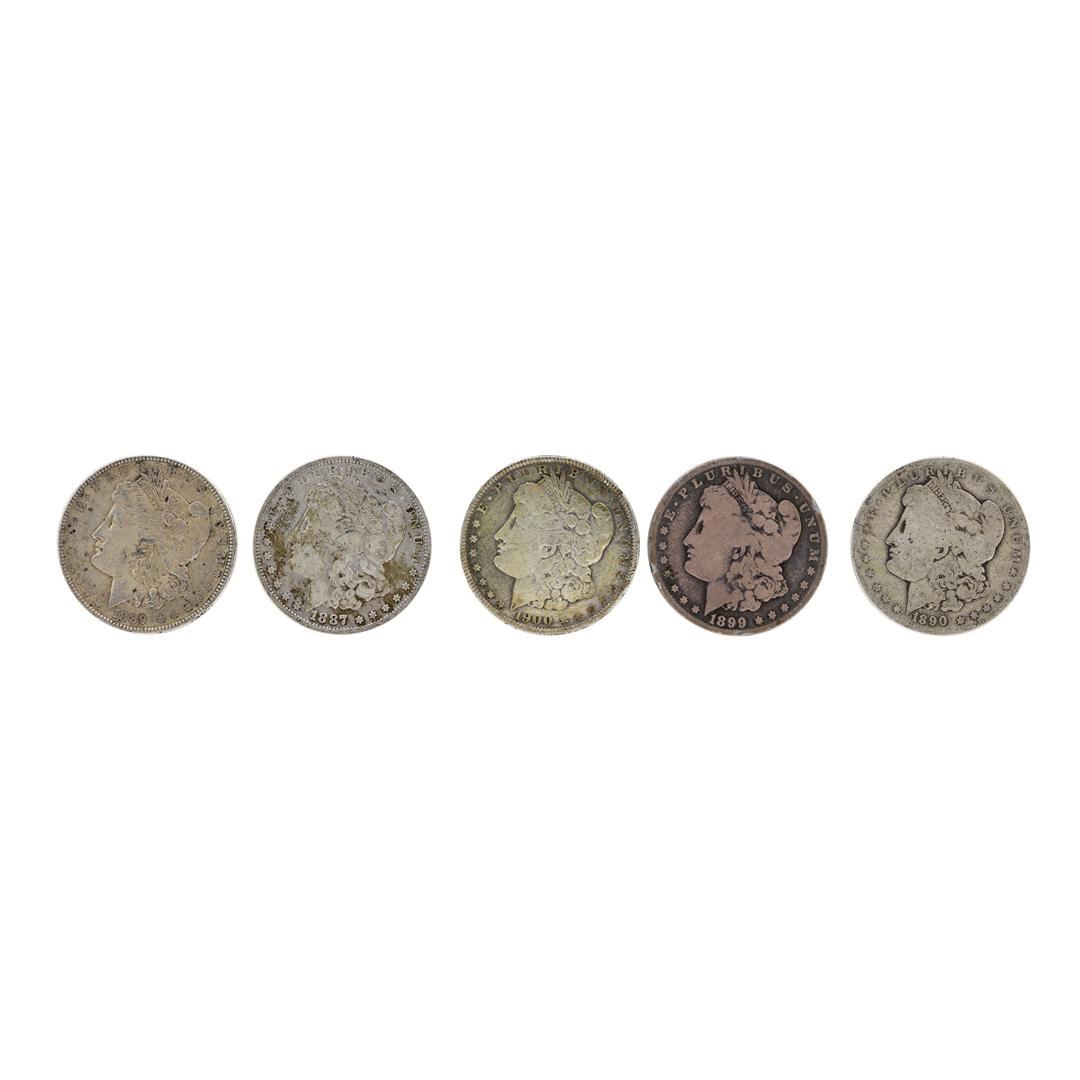 One Lot of (5) Pre 1921 $1 Morgan Silver Dollar Coins.