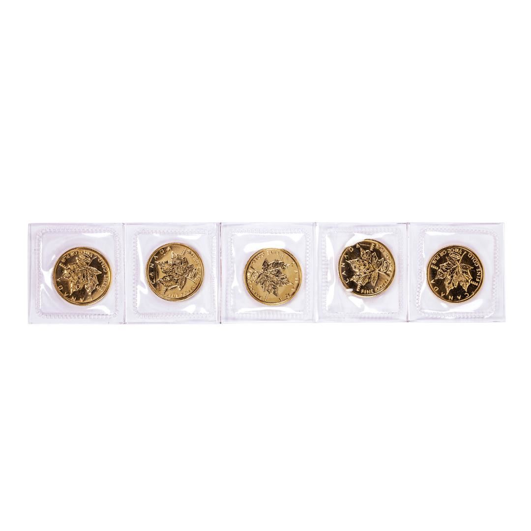 One Lot of (5) Sealed 1999 Canadian $5 Maple Leaf Gold Coins.