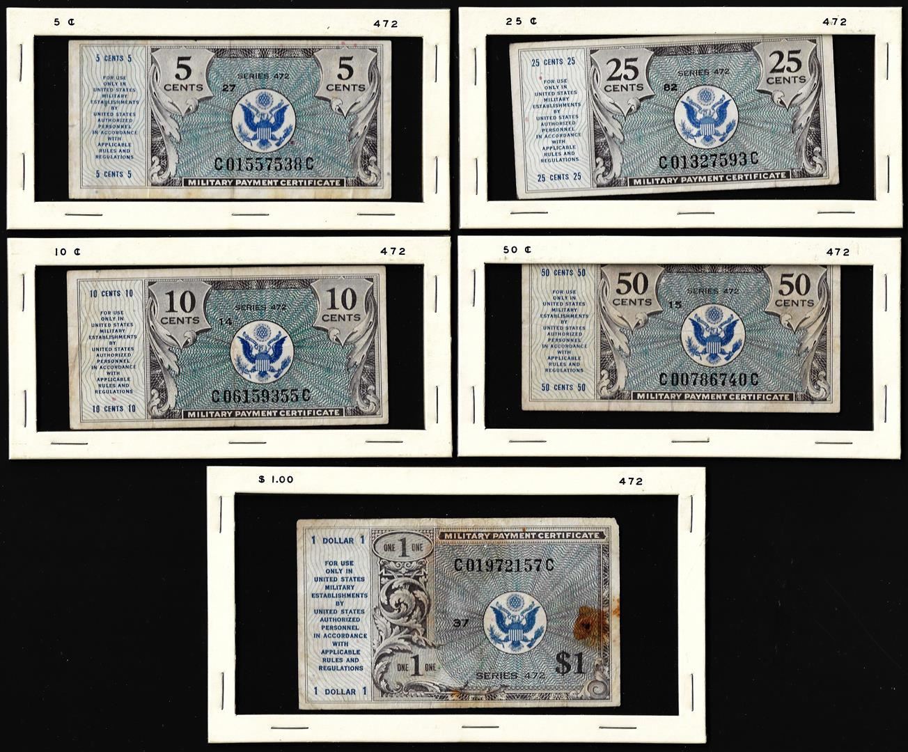One Lot of (5) Series 472 Military Payment Certificate Notes.
