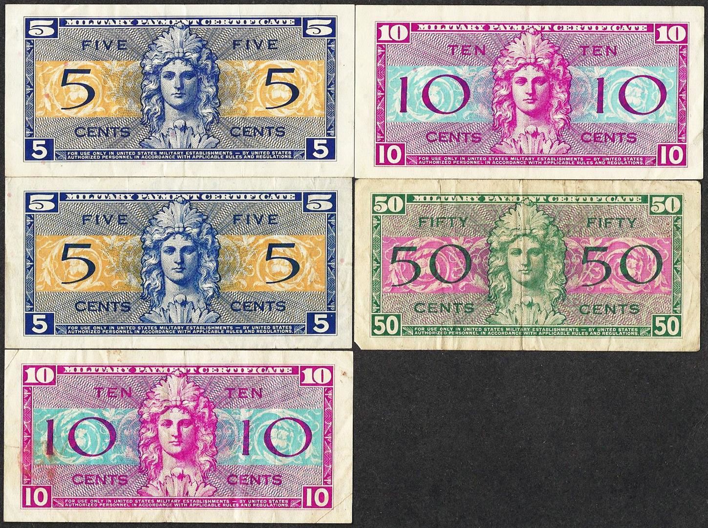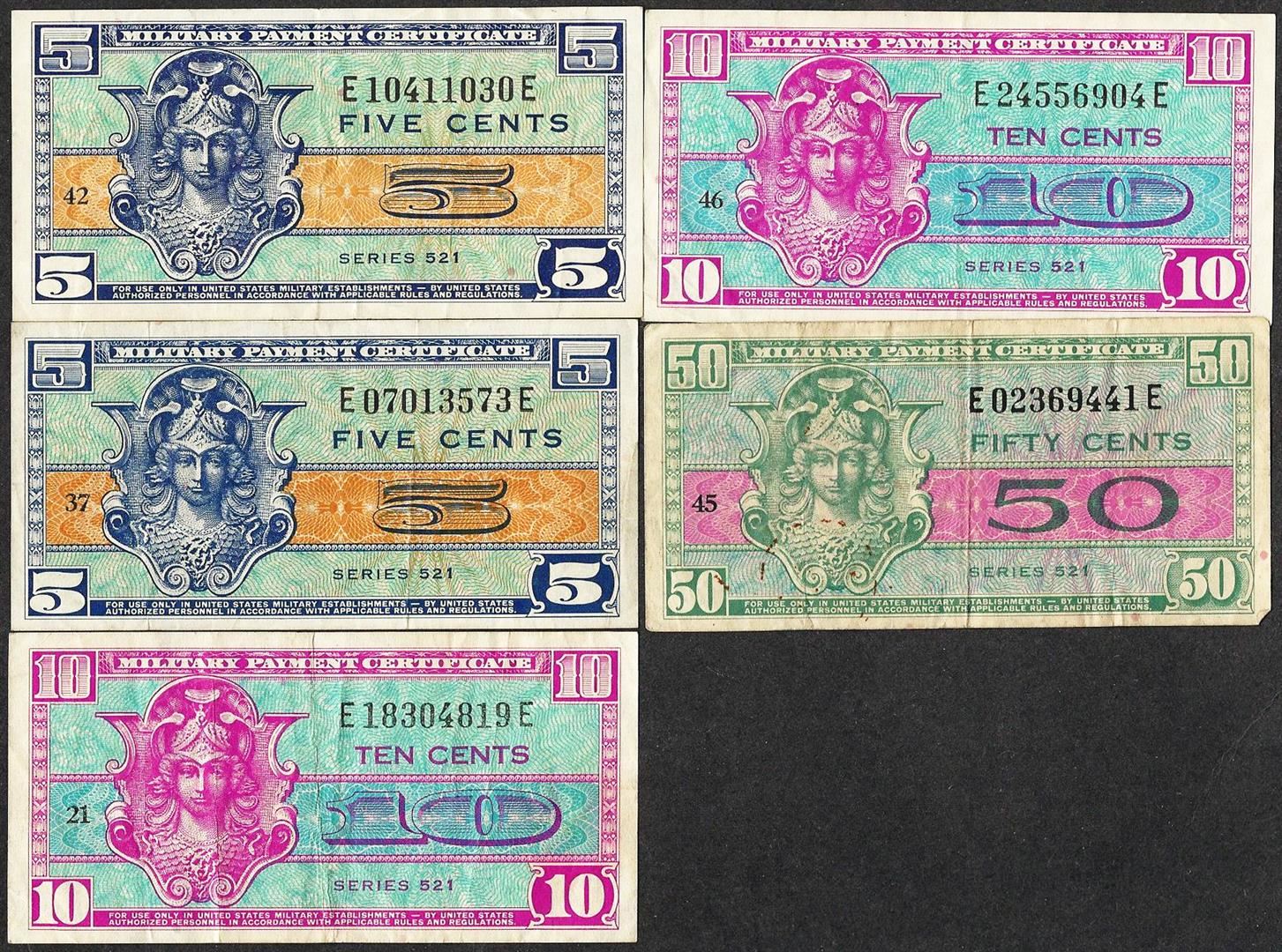 One Lot of (5) Series 521 Military Payment Certificate Notes.