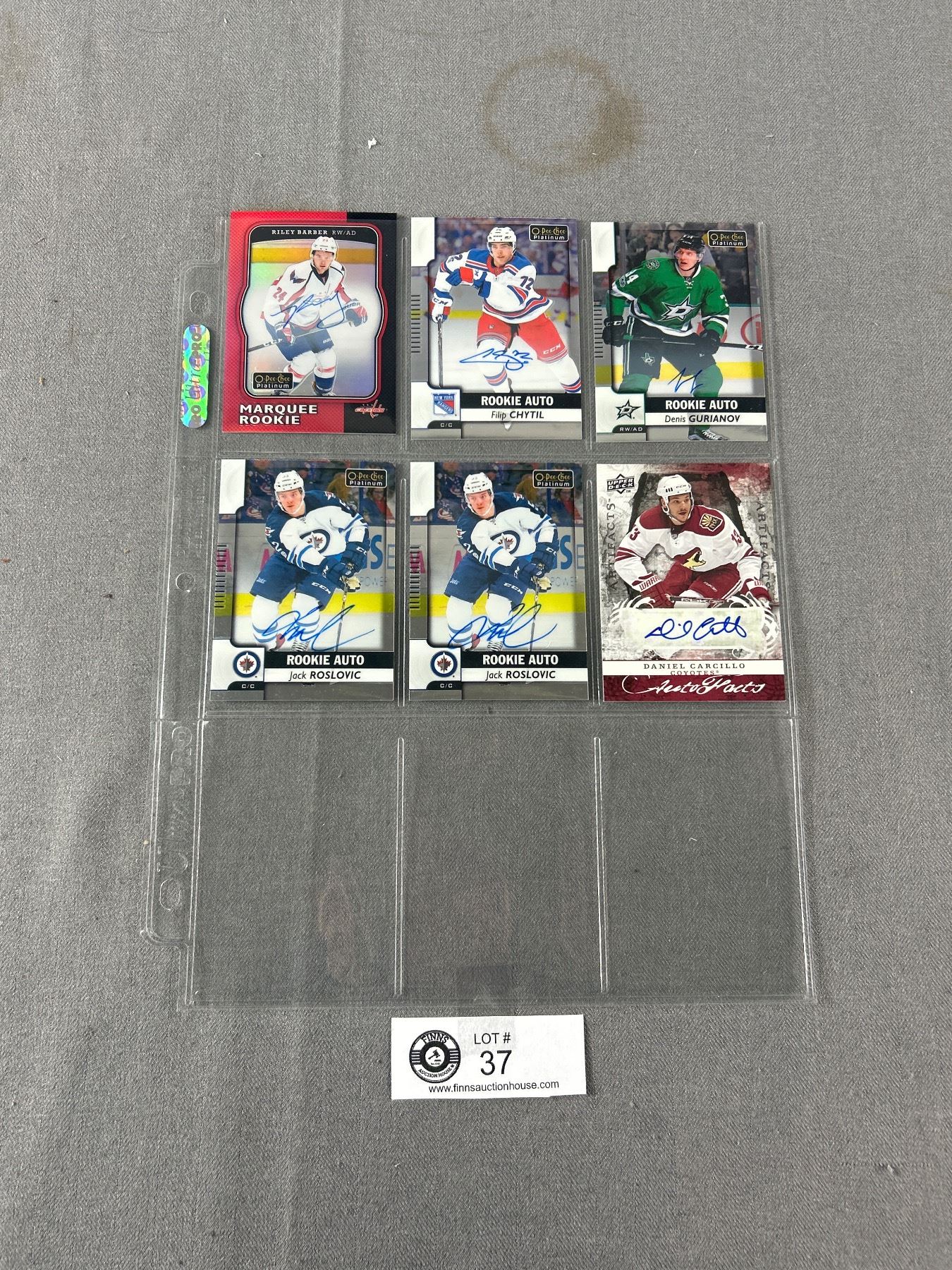 Lot of 5 Signed 2017/18 O-Pee-Chee Rookie Cards Plus 1 Signed Upper Deck Card
