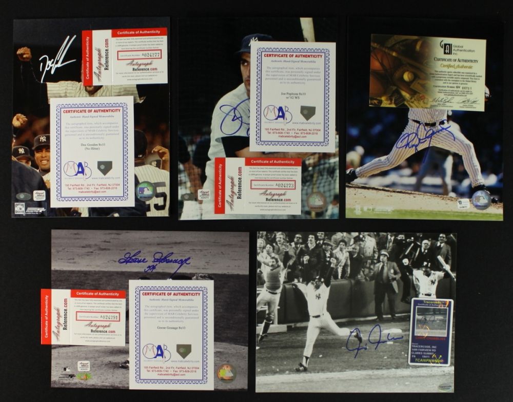 Lot includes 5 hand-signed 8x10 photos. Names include: Roger Clemens (GA COA), Goose Gossage (MAB COA & AR COA), Doc Gooden (MAB COA & AR COA), Chris Chambliss (Tracercode COA) and Joe Pepitone "62 WS" (MAB & AR COA). Autographs each include authentication specified above for authenticity purposes.