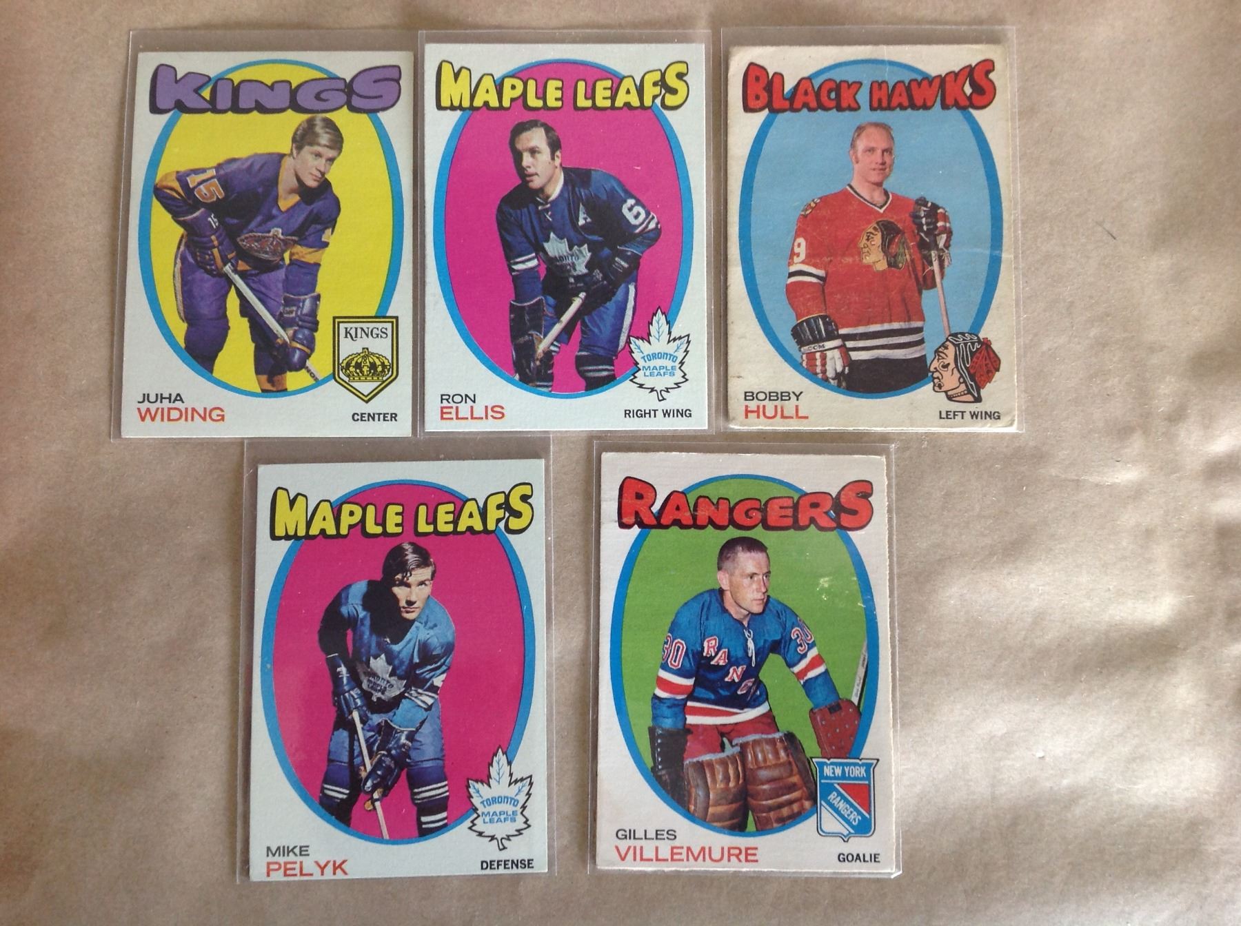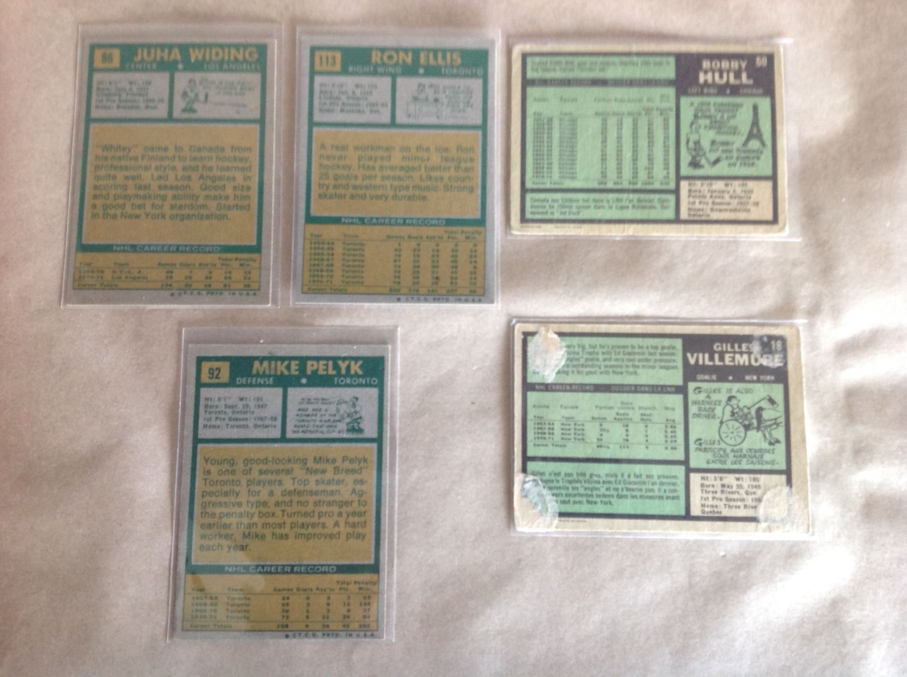 1970/71 Collectors Hockey Cards 86 - Juha Widing * 113 - Ron Ellis * 50 - Bobby Hull * 18 - Gilles Villemure * 92 - Milke Pelyk