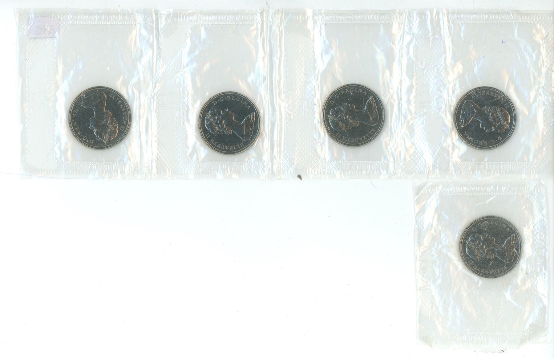 Lot of 5 UNC Canadian 1968 nickel dollars, in pilofilm