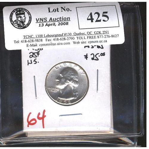 Lot of 5 USA 25¢, Includes 1947S(2), 1954S(1), 1958(2), All MS-65,