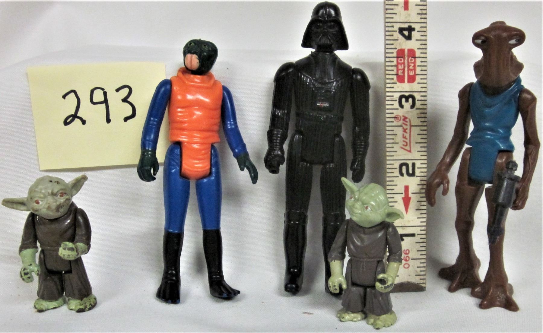 Lot of 5 Vintage 1978 Original Star Wars Action Figures - 2 Yoda, Darth Vader, Walrus Man, Hammer Head / gun