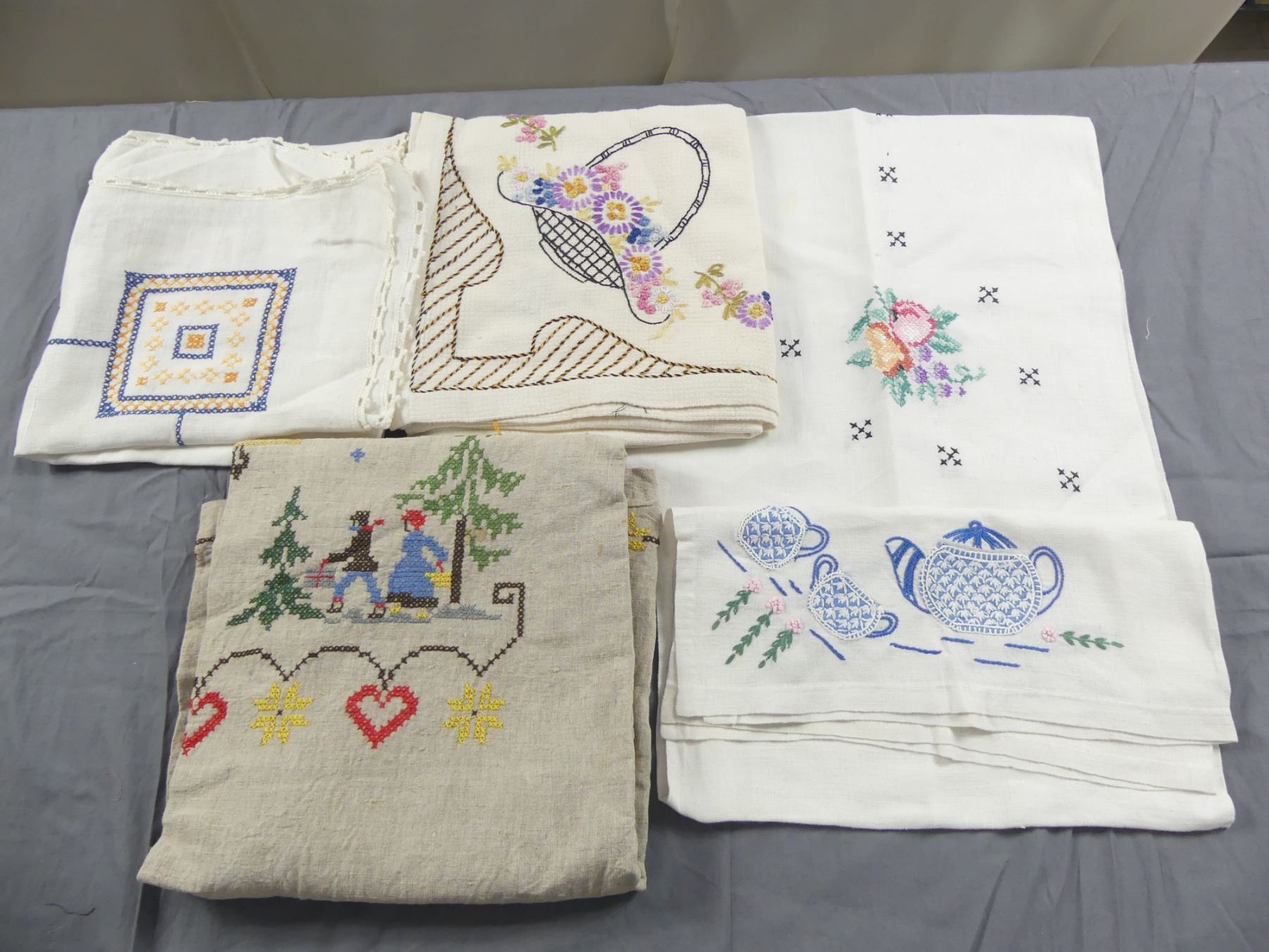 Lot of 5 Vintage Embroidered Tablecloths