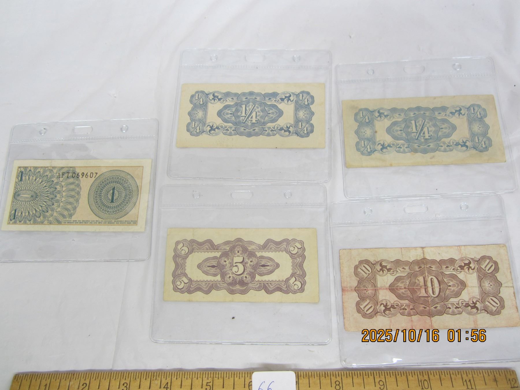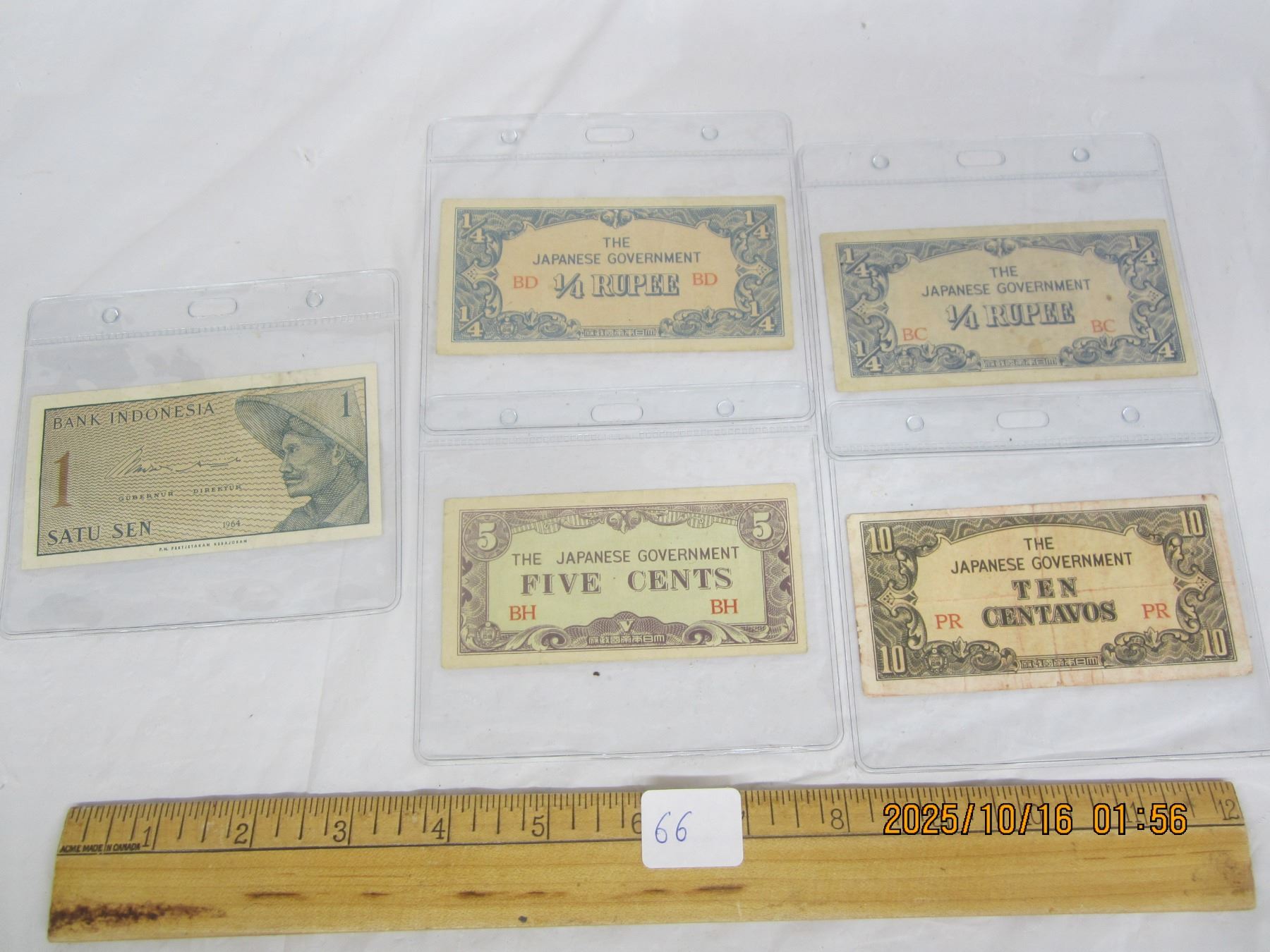 Lot of 5 Vintage Foreign Bills 4 From Japan WW2