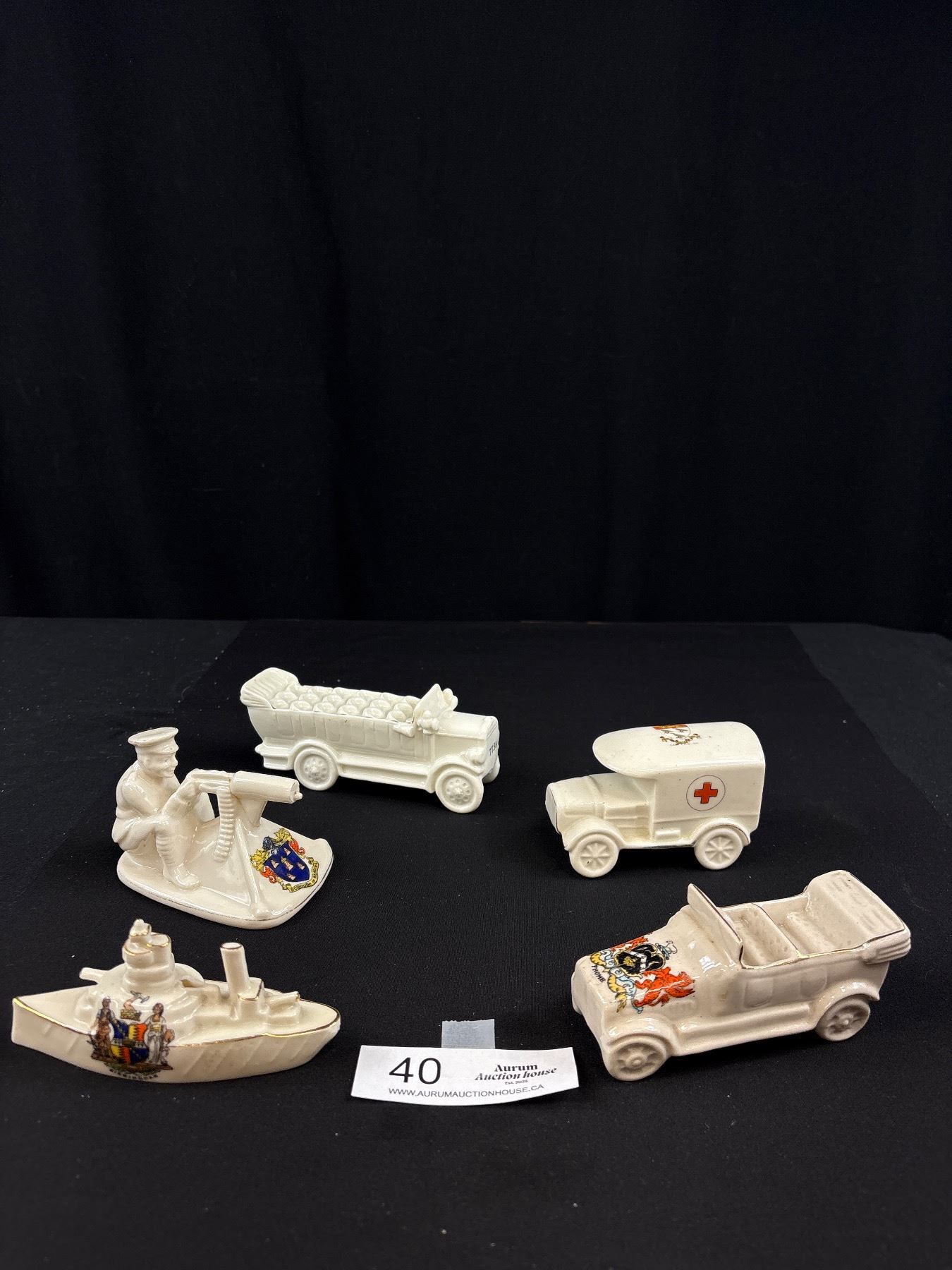 Lot of 5 Vintage Pocelain China - Military Related, 2 Have Repairs