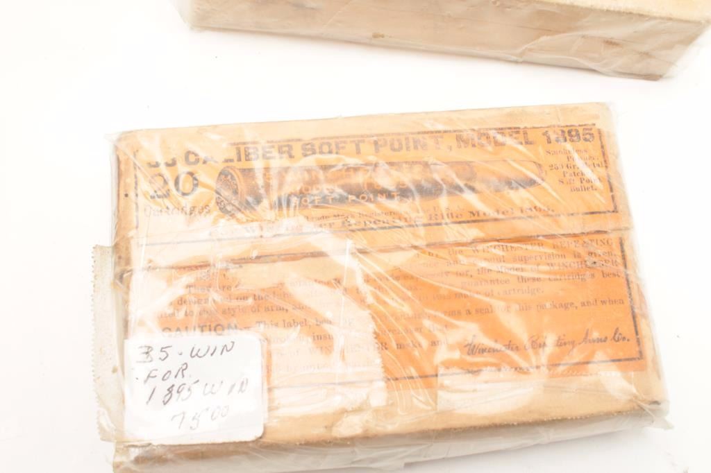 Lot of 5 boxes of collector ammunition including a box of Winchester .35 Win. for the 1895 rifle, Orange Label; one box of Remington red label 6mm; two boxes of .45-70 blanks and one box of Winchester .45-70. Est.: $75-150