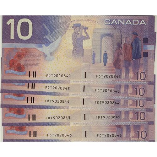 Lot of 5 consecutive "INSERT" numbered notes; BC-63aA 2000 $10 FDT.All Gem Unc.