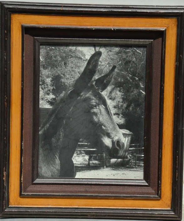 Lot of 5 great decorators including a framed and matted photo of a Humpback Whale off the coast of Kodiak, Alaska, approx. 11” x 14”; a framed photo portrait of a donkey in his corral, approx. 15” x 13”; a beautifullyframed and matted grouping of 12 hand tied and indentified trout fishing flies by F. McPhillips of Ireland, all different, approx. 15” x 19”; a framed and matted classic color print entitled “Out on the Moors by GeorgeWright of two hunting dogs, approx. 14” x 16” and a framed poster from the William B. Ruger Gallery of the National Firearms Museum from 2004 commemorating their display “On The Side of Law & Order” personallyautographed by NRA notables like Wayne La Pierre and Kayne Robinson. Est.: $200-$400.