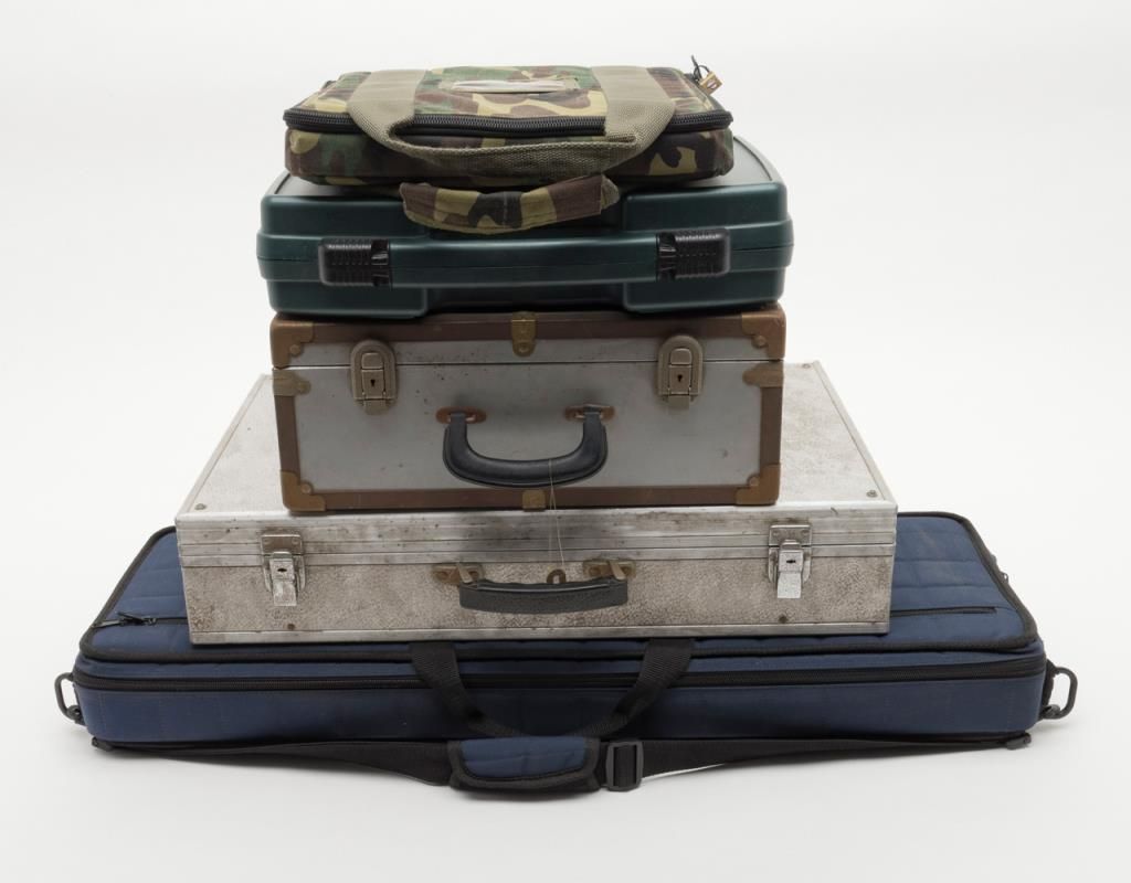 Lot of 5 gun cases. The lot includes two soft and three hard sided pistols cases. Several of the cases come with attached locking devices. A nice set of cases for your next trip to the range. Est.: $50-$100.