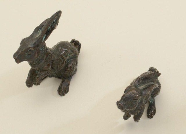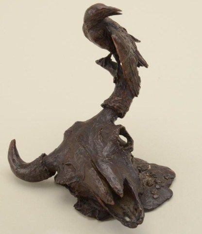 Lot of 5 metal castings, 4 unsigned and probably art metal, one bronze of trail skull signed by prominent Western artist, Ernie Berke, circa 1960. From the estate of Robert Petersen. Est.: $150-$300.