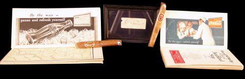 Lot of 5 misc "Coca-Cola" items: coupon, 2 map books w/ "Coca-Cola" ads and 2 cigars w/ Coca-Cola bands