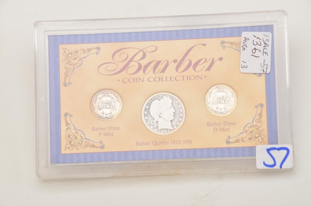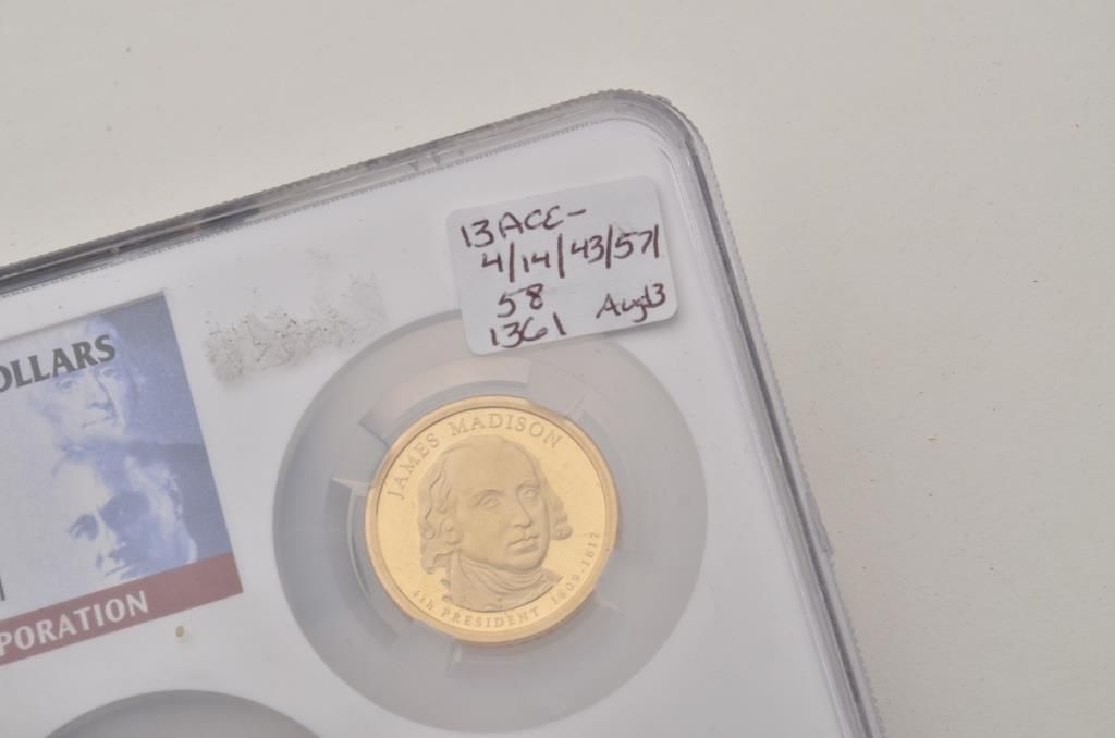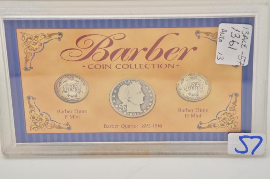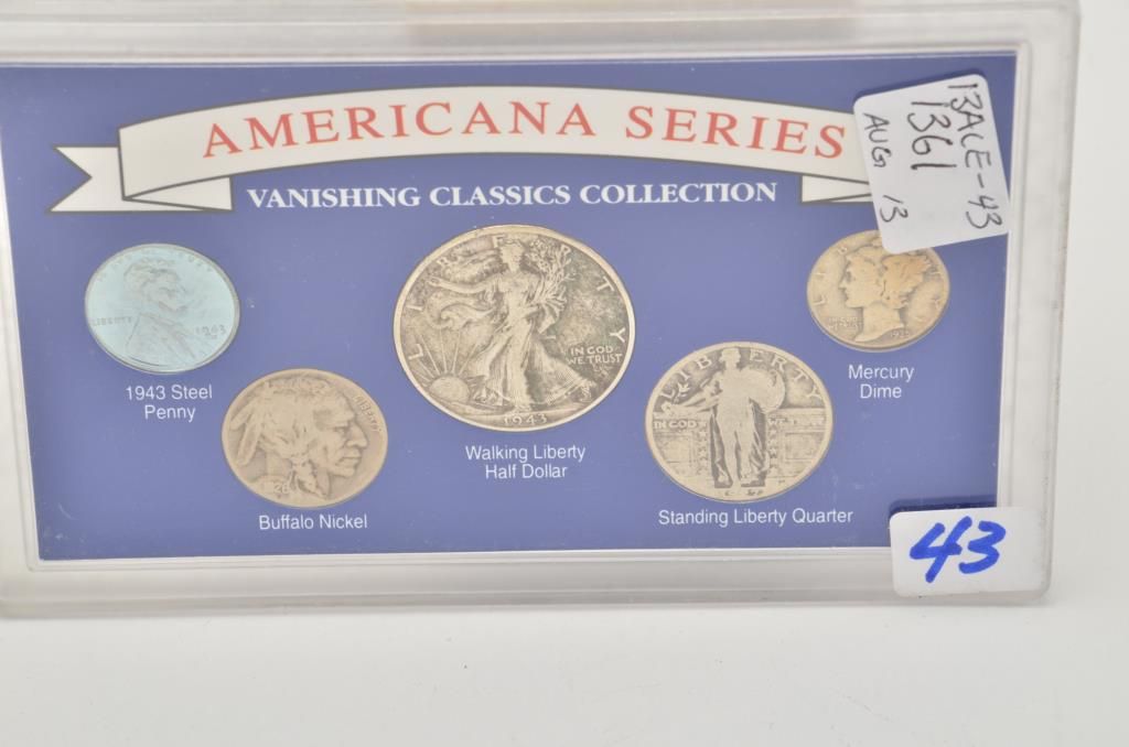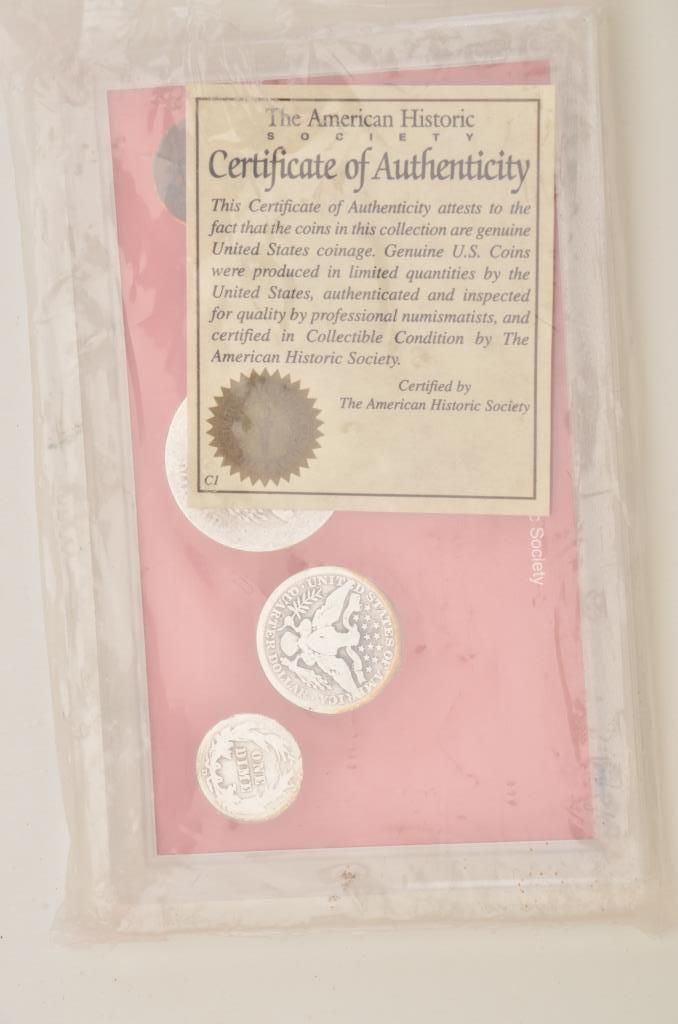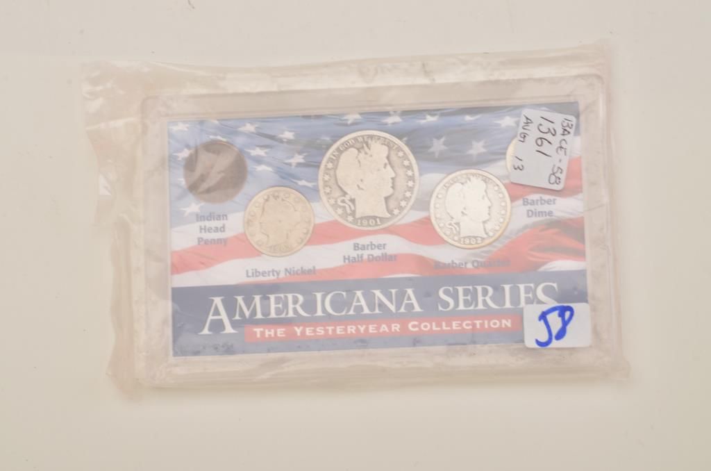 Lot of 5 misc. groupings of collector coins in protective cases including the Americana Series , “Vanishing Classics Collections” of 5 U.S coins; Americana Series, “The Yesteryear Collection”; a Barber CoinCollection of 3 U.S. coins; a 2007-S Presidential Dollars 4 Coin set and the 2007 Presidential Dollars 12 dollar coin set. Est.: $125-$250.