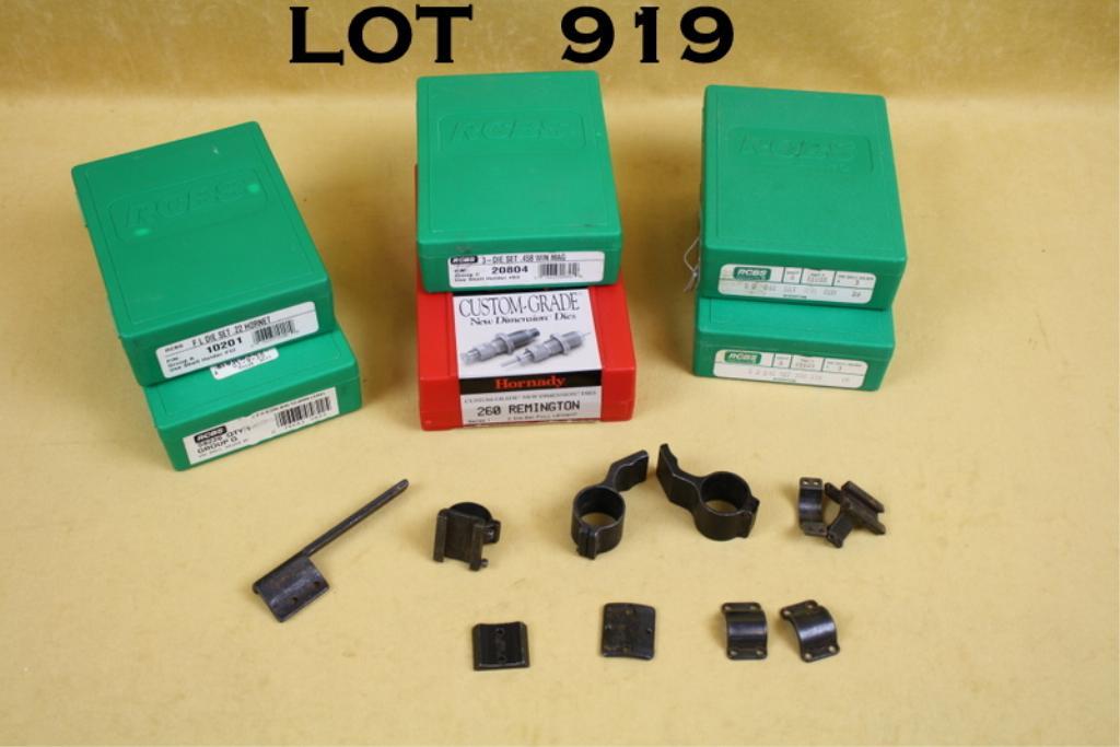 Lot of 5 misc. reloading dies including .260 Remington; .300 Savage; .458 Win Mag.; 6mm Rem. and .22 Hornet. Est.: $50-$75.