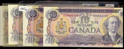 Lot of 5 notes, 1971 $10 BC-49c T/E, V/V, BC-49d EER (2), ETW. All notes are uncirculated.
