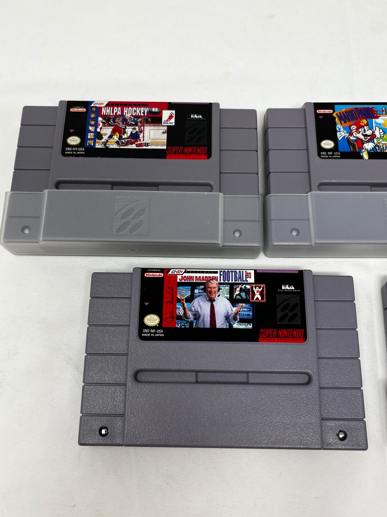 Including Madden Football (x2), hockey, basketball, mario paint cartridges *untested*