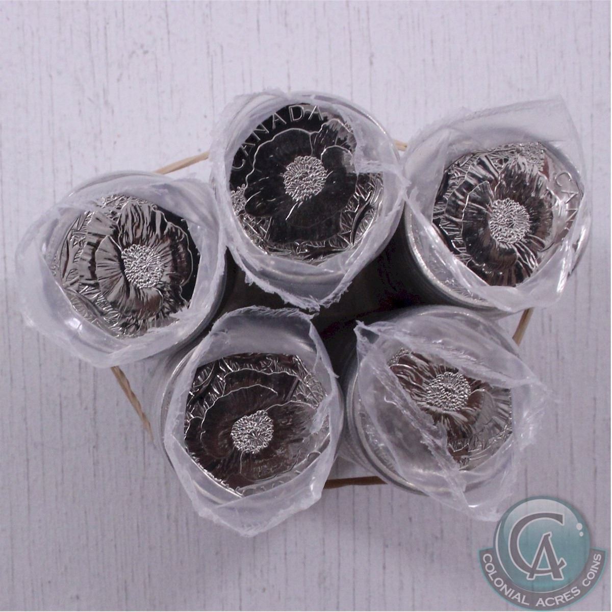 Lot of 5 x 2015 NON COLOURED Poppy 25-Cents Original Roll of 40 pcs.