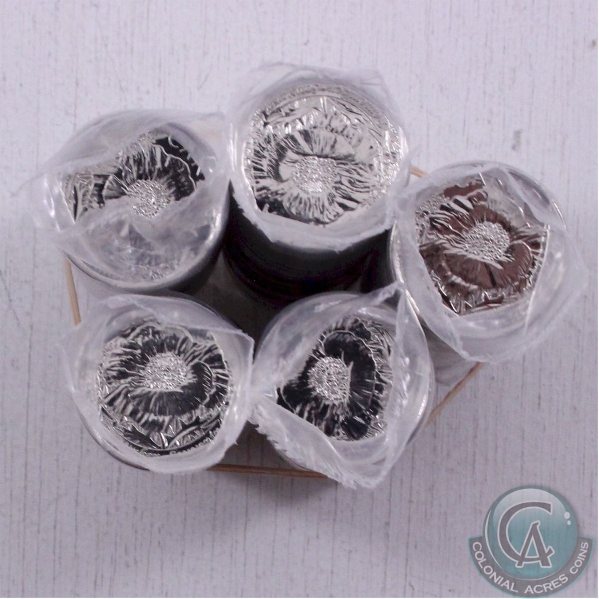 Lot of 5 x 2015 NON COLOURED Poppy 25-Cents Original Roll of 40 pcs.