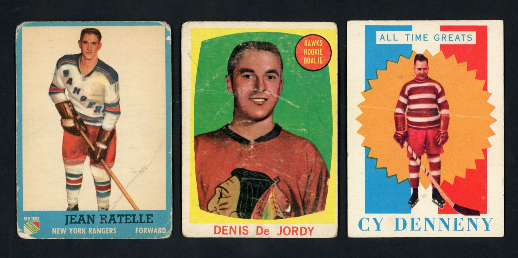 5 off-low grade early 60s star cards, includes 1960-61 #8 Cy Denneny ATG, 1961-62 #37 Denis DeJordy RC, 1962-63 #58 Jean Ratelle (2nd yr), 1963-64 #1 Milt Schmidt, 1063-64 #8 Ed Westfall RC. See scans for condition details!