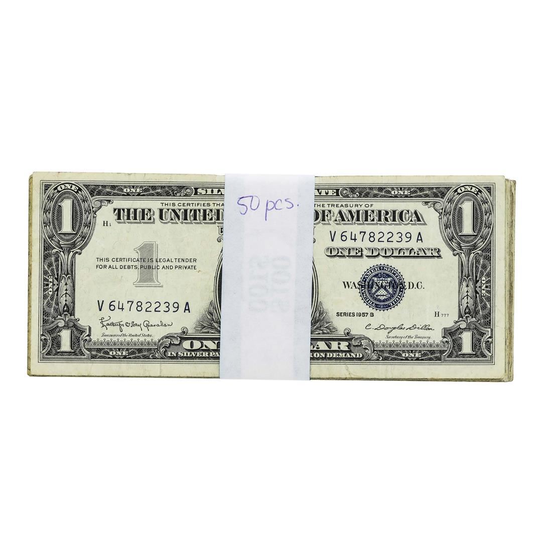 One Lot of (50) 1957 $1 Silver Certificate Notes Circulated.