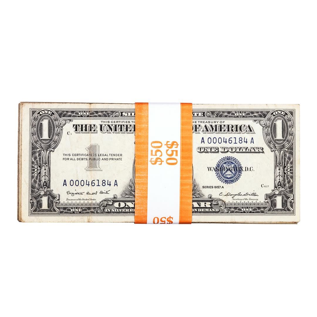 One Lot of (50) 1957 $1 Silver Certificate Notes.
