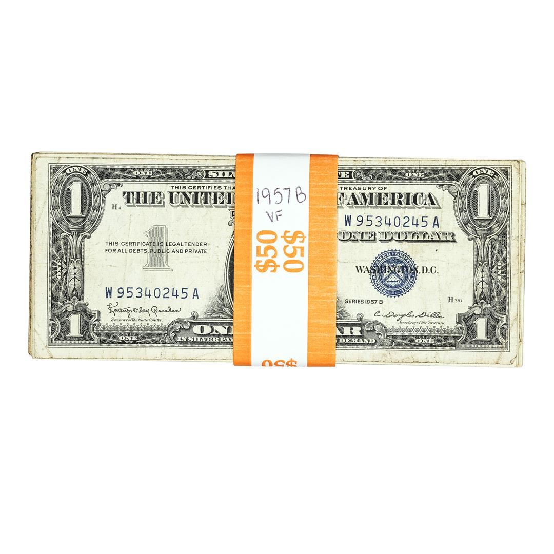One Lot of (50) 1957B $1 Silver Certificate Notes - Very Fine.