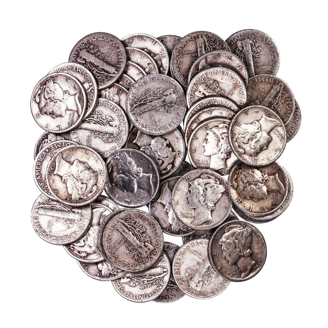 One Lot of (50) Assorted Date Mercury Dime Coins.