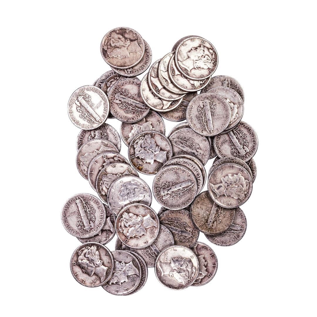 One Lot of (50) Assorted Date Mercury Dime Coins.
