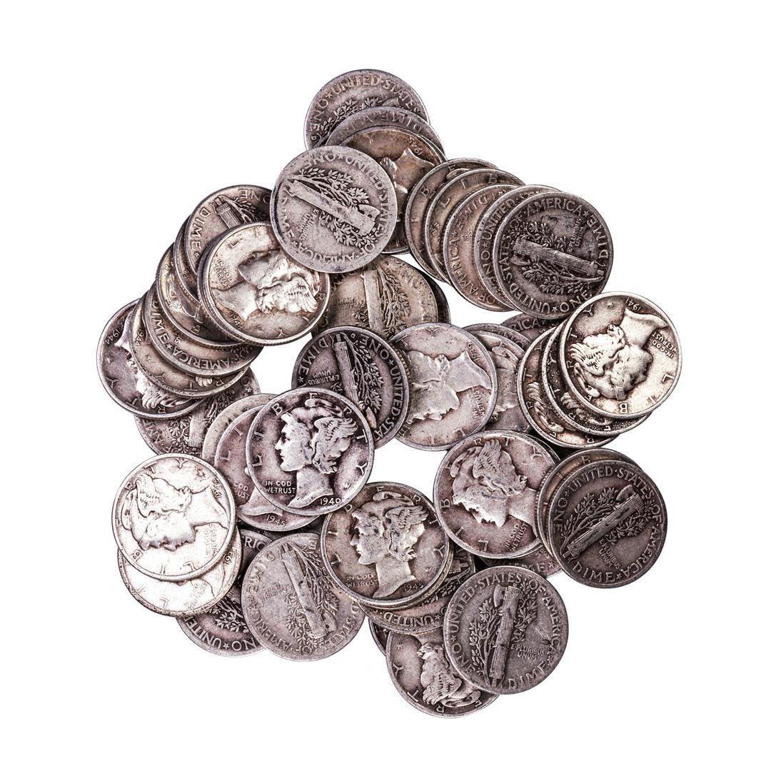 One Lot of (50) Assorted Date Mercury Dime Coins.