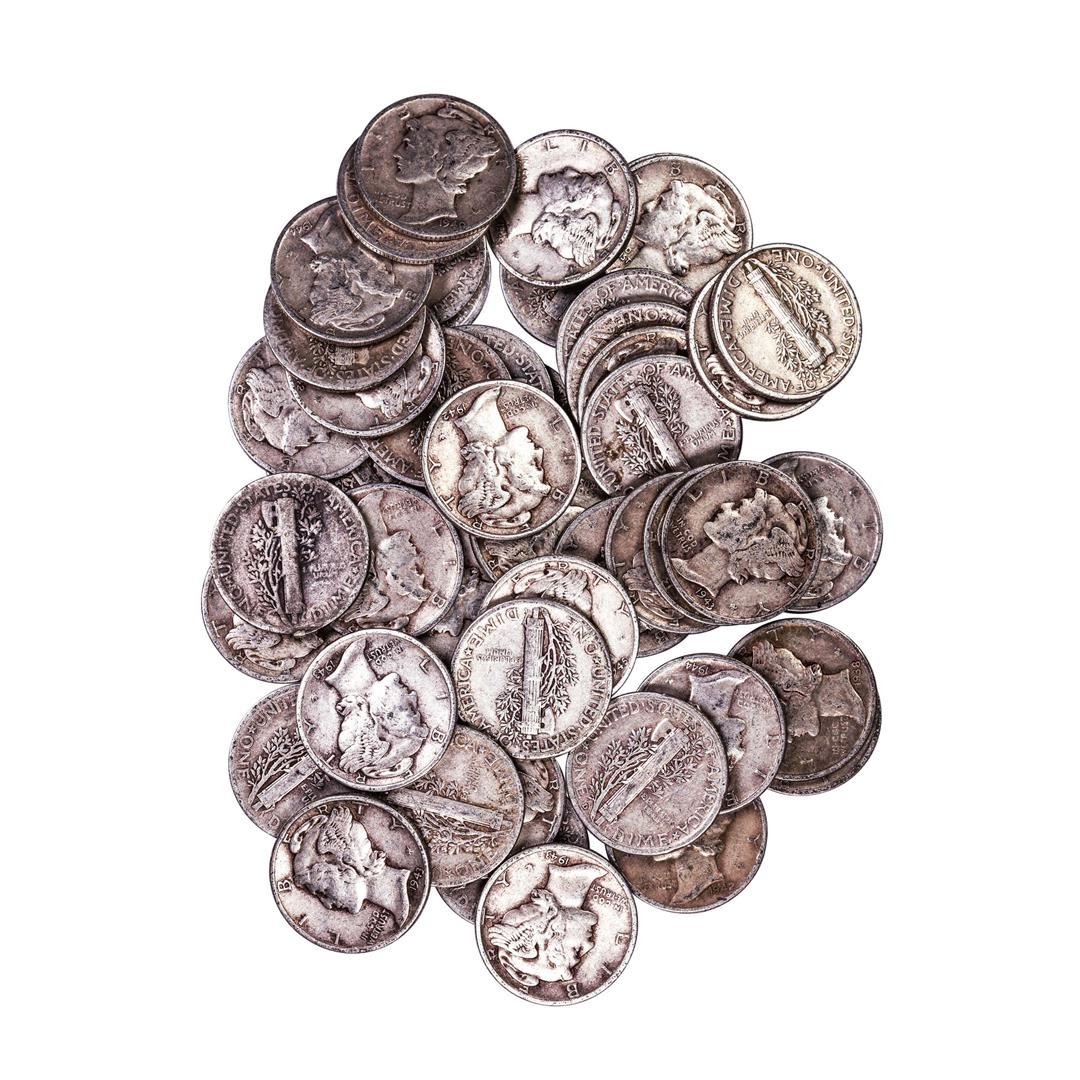 One Lot of (50) Assorted Date Mercury Dime Coins.