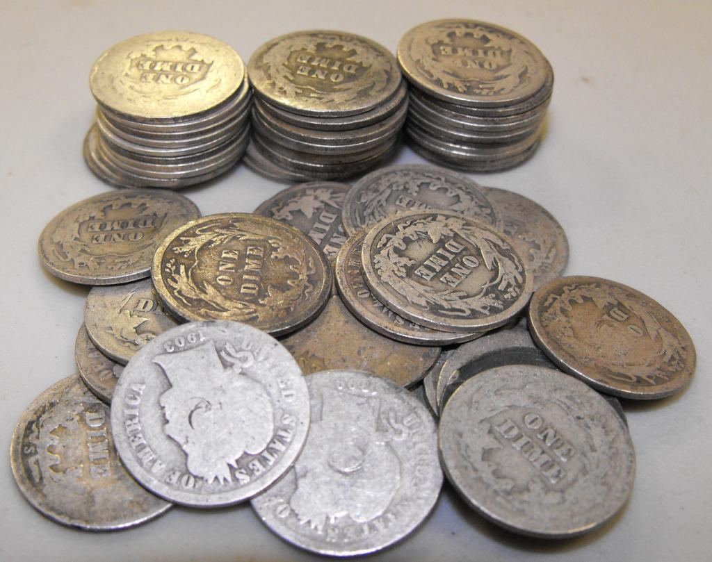 A lot of 50 mixed Barber dimes- Please review the bidding and payment procedure. Your bid is a contract and promise to pay within our parameters. We offer easy payment options, with a self click payment applet. We also accept checks, money order and bank transfer. Payment is due within 5 days of invoice. We conduct our auctions pursuant to all Governmental, State , County and City laws and codes. We are members of the NAA and use the professional code of ethics for our sales. We expect you to honor your purchase and bids. All of our lots are US Asset Forfeiture & Seizures Acquisitions. Fresh to the market items, non auction circuit merchandise. Investment opportunity- Please view our website for future sales, buy it now items, feedback, questions, weekly tidbits on collecting, to consign or just to learn a bit about us. Visit us at www.afsauctions.us