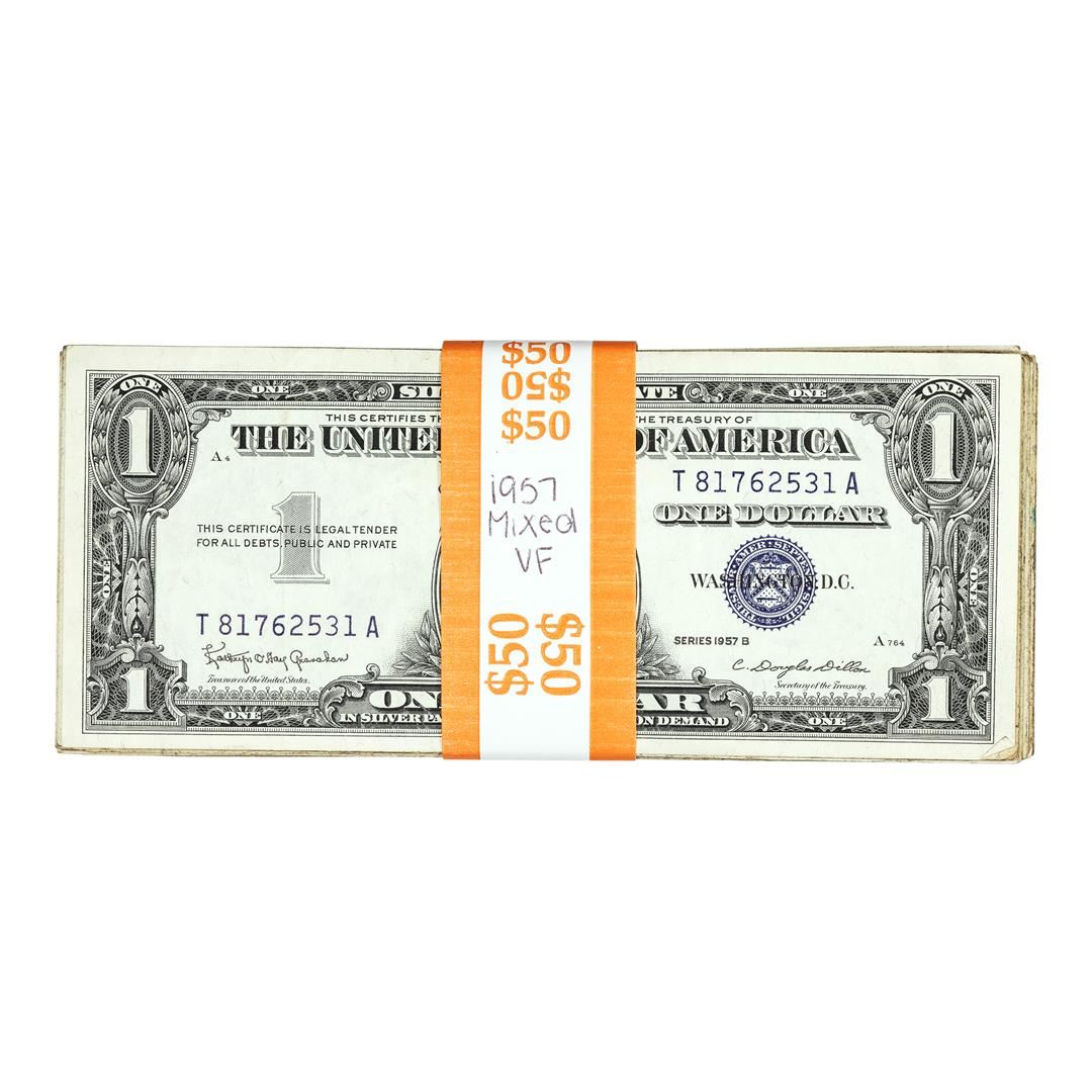 Lot of (50) Mixed Series 1957 $1 Silver Certificate Notes - Very Fine