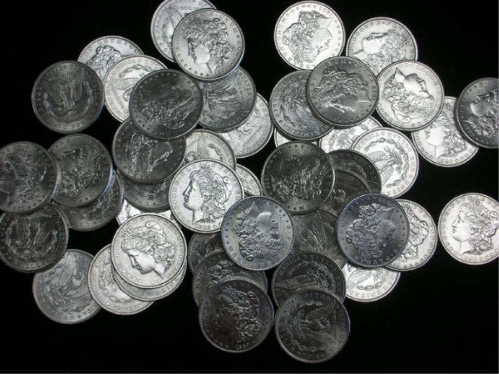 A nice investment lot of 50 Morgans- All UNC coins- All of our items are Official US Asset Forfeiture & Seizures acquisitions. They are not privately held items. They may have belonged to bankrupt asset dealers, coin collectors, coindealers, drug dealers, con men and the like. We acquire these assets and are ordered by the administrator to sell them at auction. We have a 38,000 person client list that buy regularly from us. Most of the items we sell have prebids, mailbids, left bids and internet bids. On rare occassion items will have no starting bid and will be passed. These items are offered back up at a later date. We sell millions of items annually and do not have the time check each lot for keydates, mint marks, error coins and more. This is the allure of our sales. Read our Testimonials on our website. We sell quality tangible assets for less. An investment opportunity that is sure to delight the beginning collector or investor,the way to the seasoned , experienced investor. We sell all types of assets from collectibles to land. With a bit of all in between. Look us up at our website, see what they are saying, and acquire your investment today. www.afsauctions.us