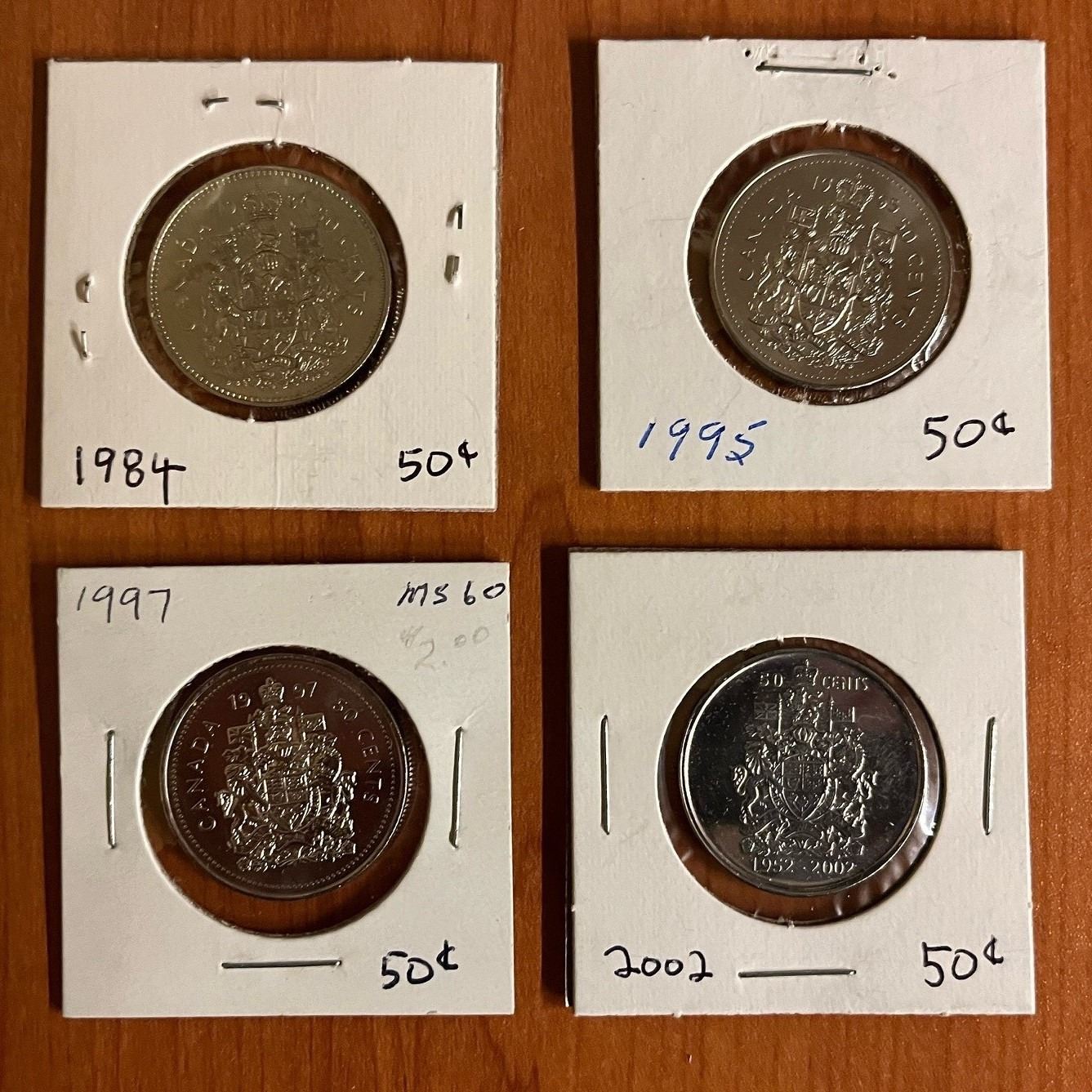Lot of 50 cent coins. 1984, 1995, 1997, 2002.