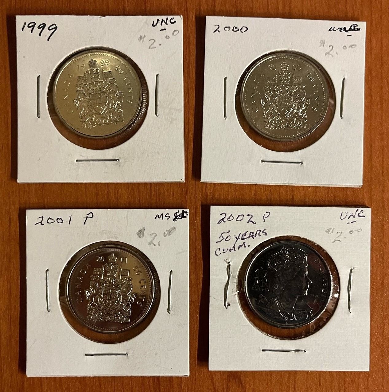 Lot of 50 cent coins. 1999, 2000, 2001, 2002.