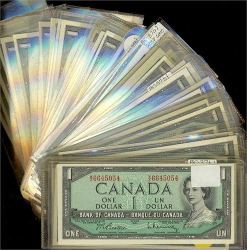 Lot of 50 notes, 1954 $1 BC-37b and 37bi. Includes better prefix notes such as H/F. Most notes are uncirculated