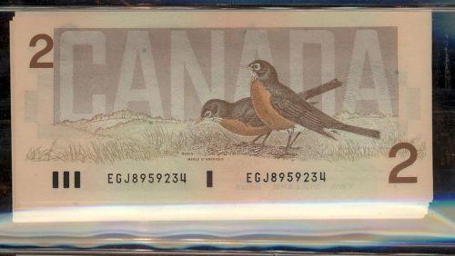 Lot of 54 notes, 1986 $2 BC-55bi Thiessen-Crow prefix EGJ. All notes are Choice Unc.