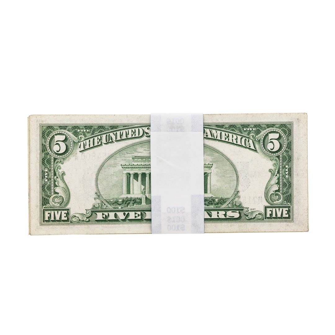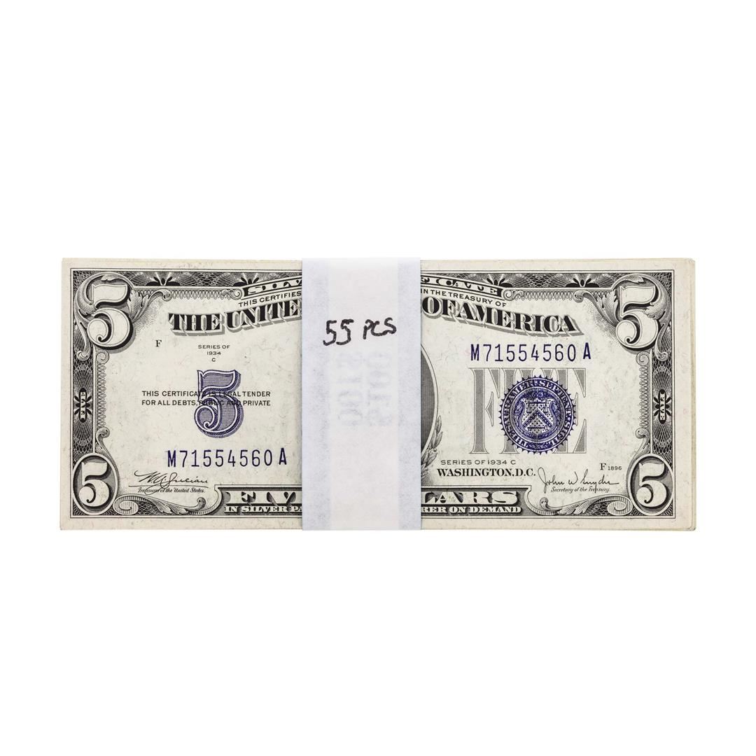 One Lot of (55) 1934C $5 Silver Certificate Notes Uncirculated.