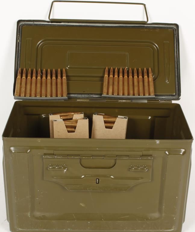 Includes (500) rounds in stripper clips. With large green metal ammo can.