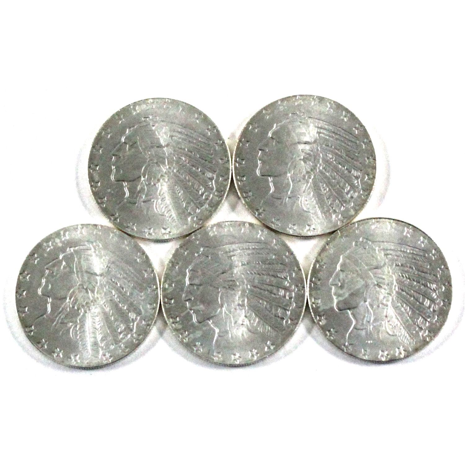 Lot of 5x 1/10th Fine Silver Rounds with the USA Indian Head $5 gold design. .999 Fine (Tax Exempt) 5pc