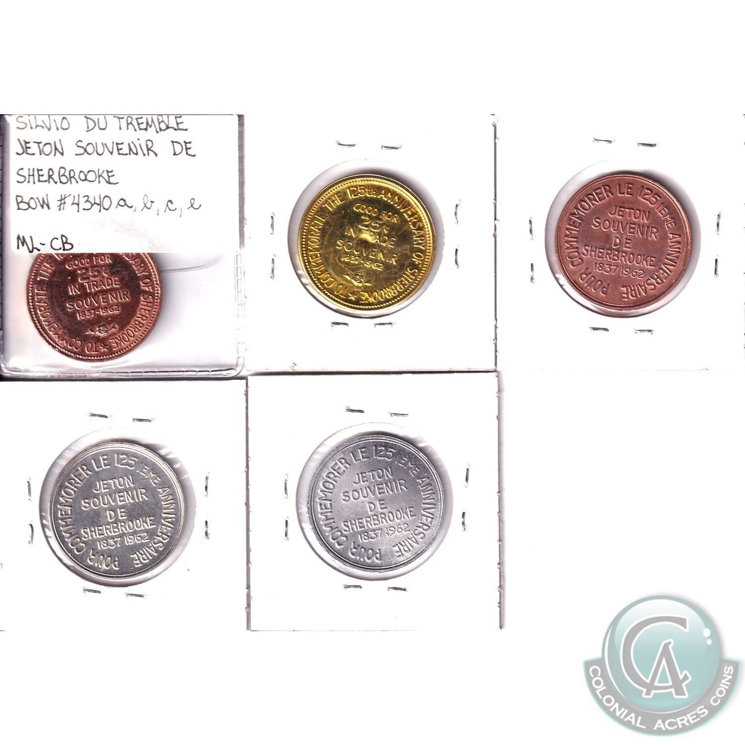 Lot of 5x 1837-1962 Sherbrooke Coin Exchange 'To Commemorate the 125th Anniversary of Sherbrooke' Tokens in Different Metal Compositions. 27mm diameters. 5pcs