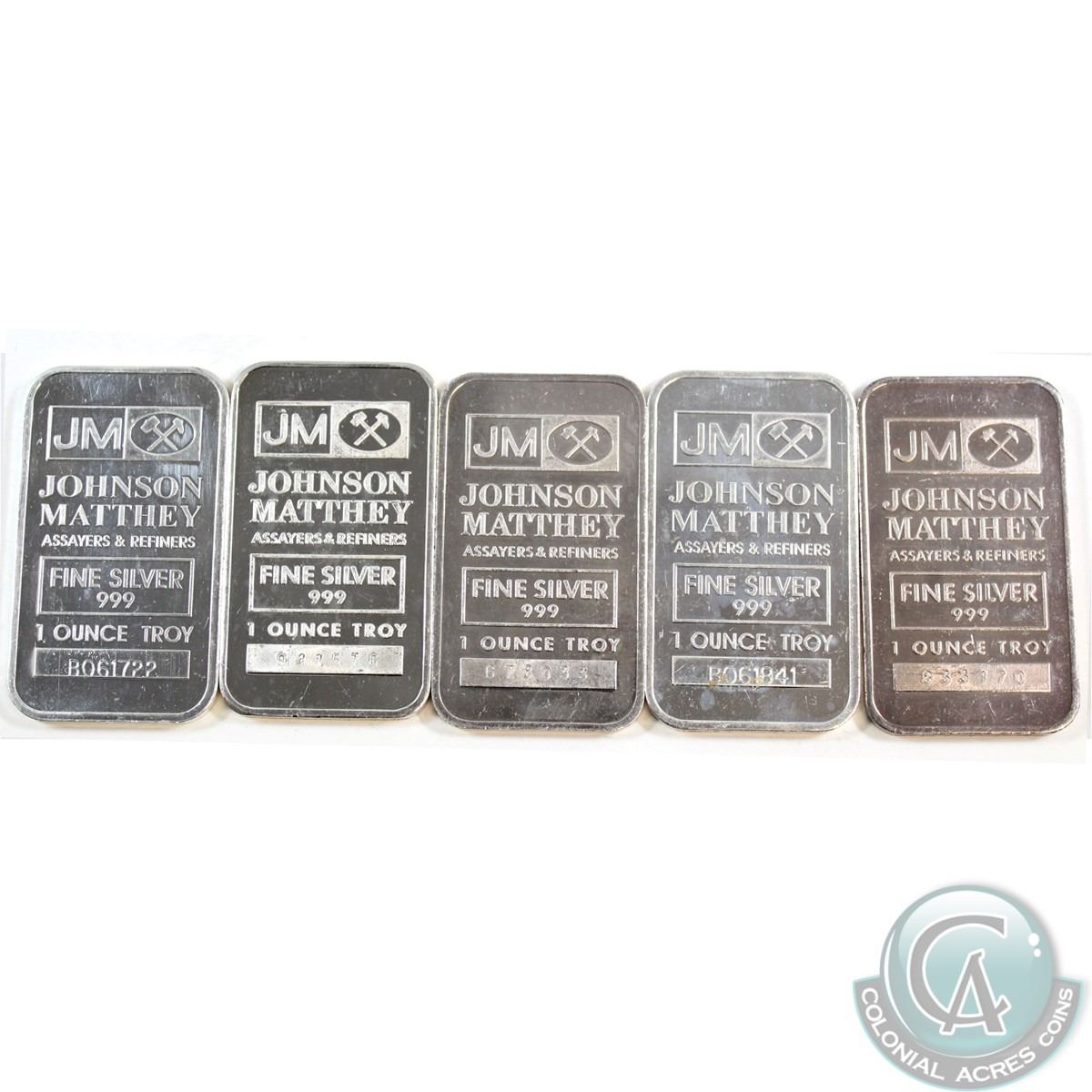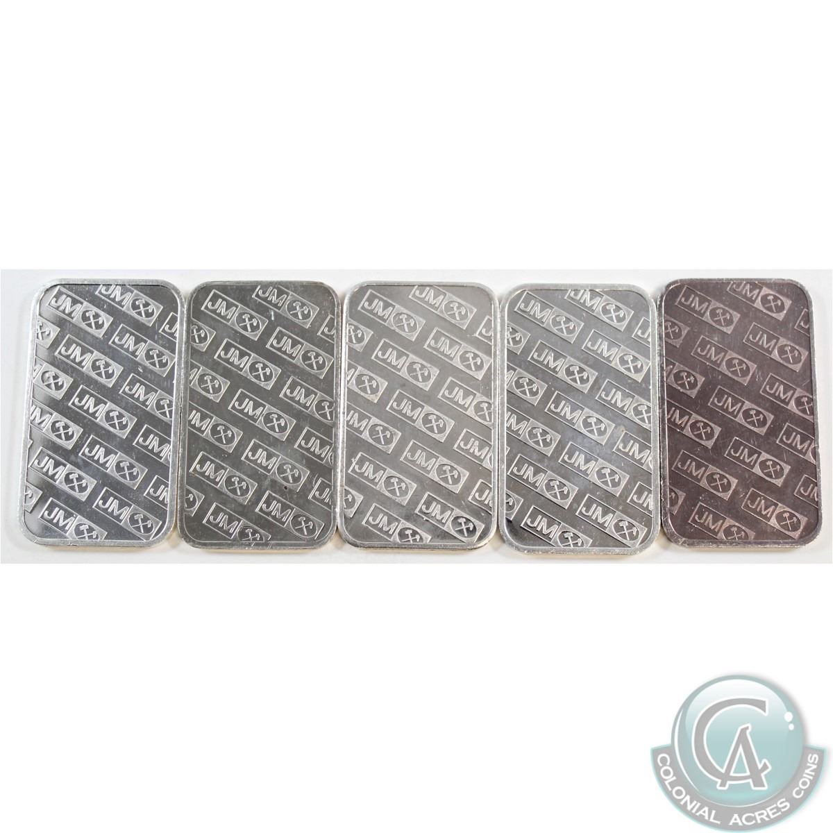 Lot of 5x 1oz JM .999 Fine Silver Bars (may be toned and/or scratched). 5pcs (TAX Exempt)