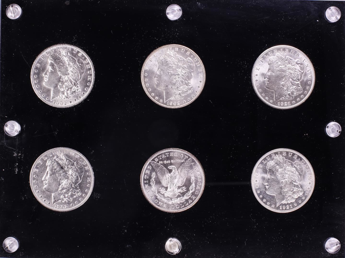One Lot of (6) $1 Morgan Silver Dollar Coins All Mints in Holder.